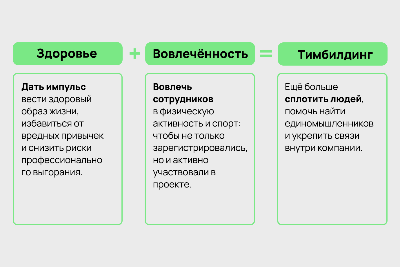 Кроме командной цели сотрудники активно ставили личные, осваивали новые виды спорта и внедряли здоровые привычки в свою жизнь. За личные достижения можно получить заслуженные баллы, которые тоже пойдут в общую копилку для победы в глобальном челлендже. Например, пройти челлендж «Ходим и медитируем» или курс «Как правильно питаться на работе».