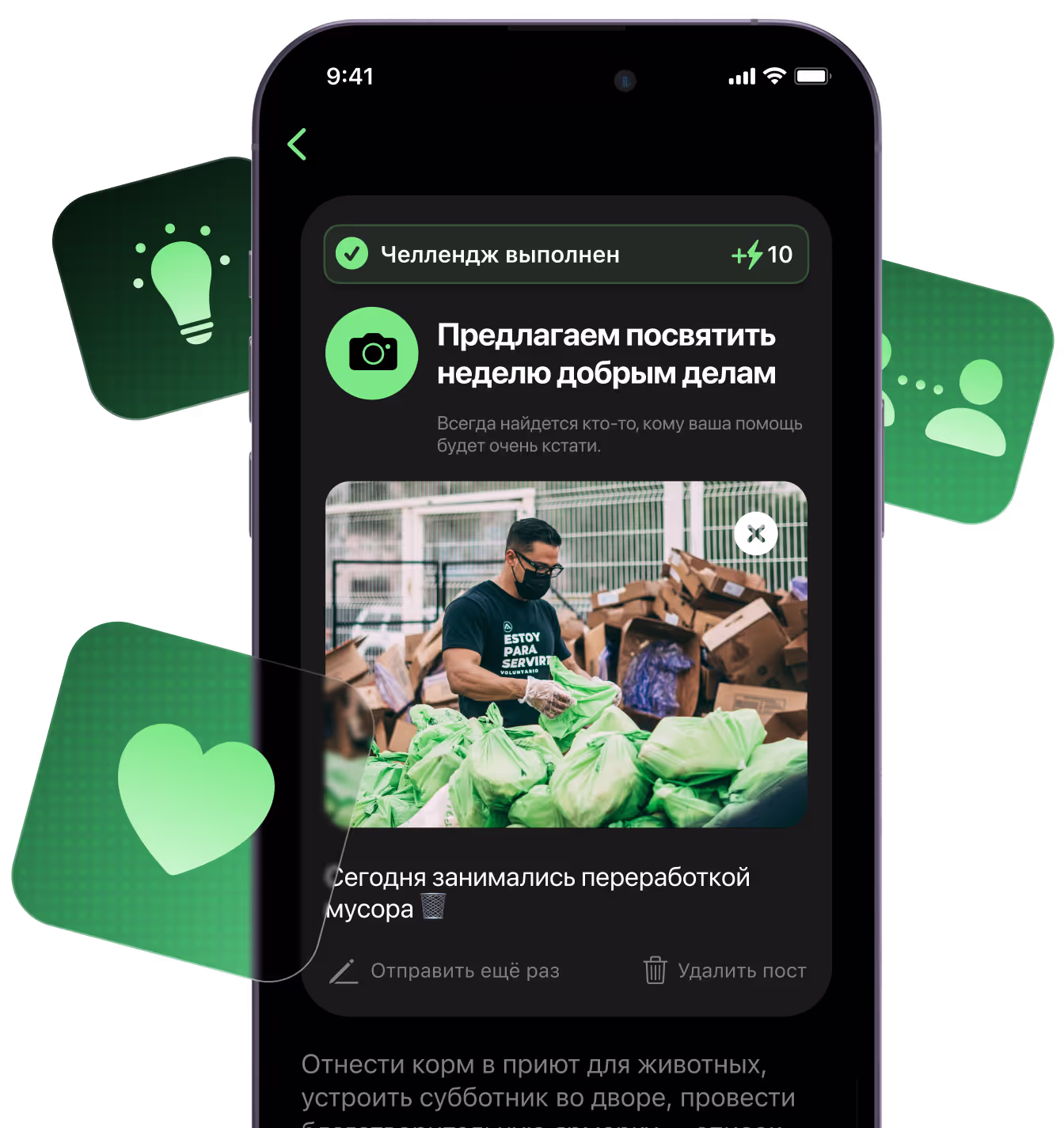 Платформа №1 в сфере well-being: вовлекайте сотрудников в добрые дела и укрепляйте командный дух через участие в значимых инициативах.