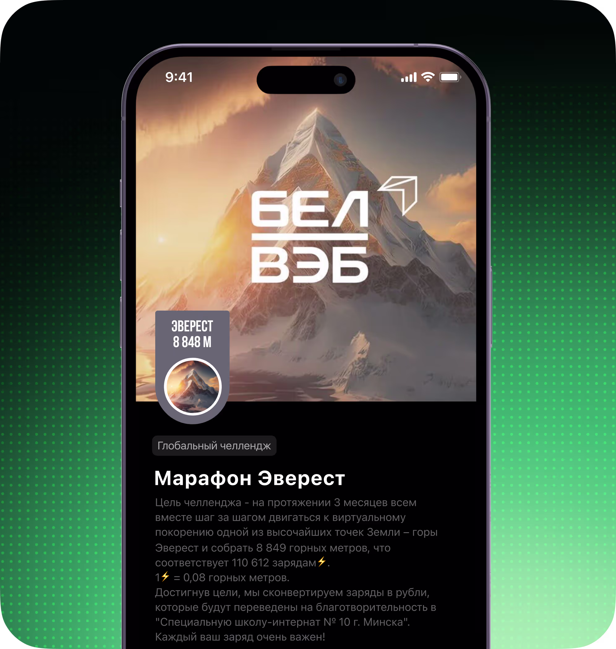 Сотрудники БелВЭБ собрали более 100 тысяч зарядов за три месяца, поддержали школу-интернат в Минске и покорили виртуальный Эверест.