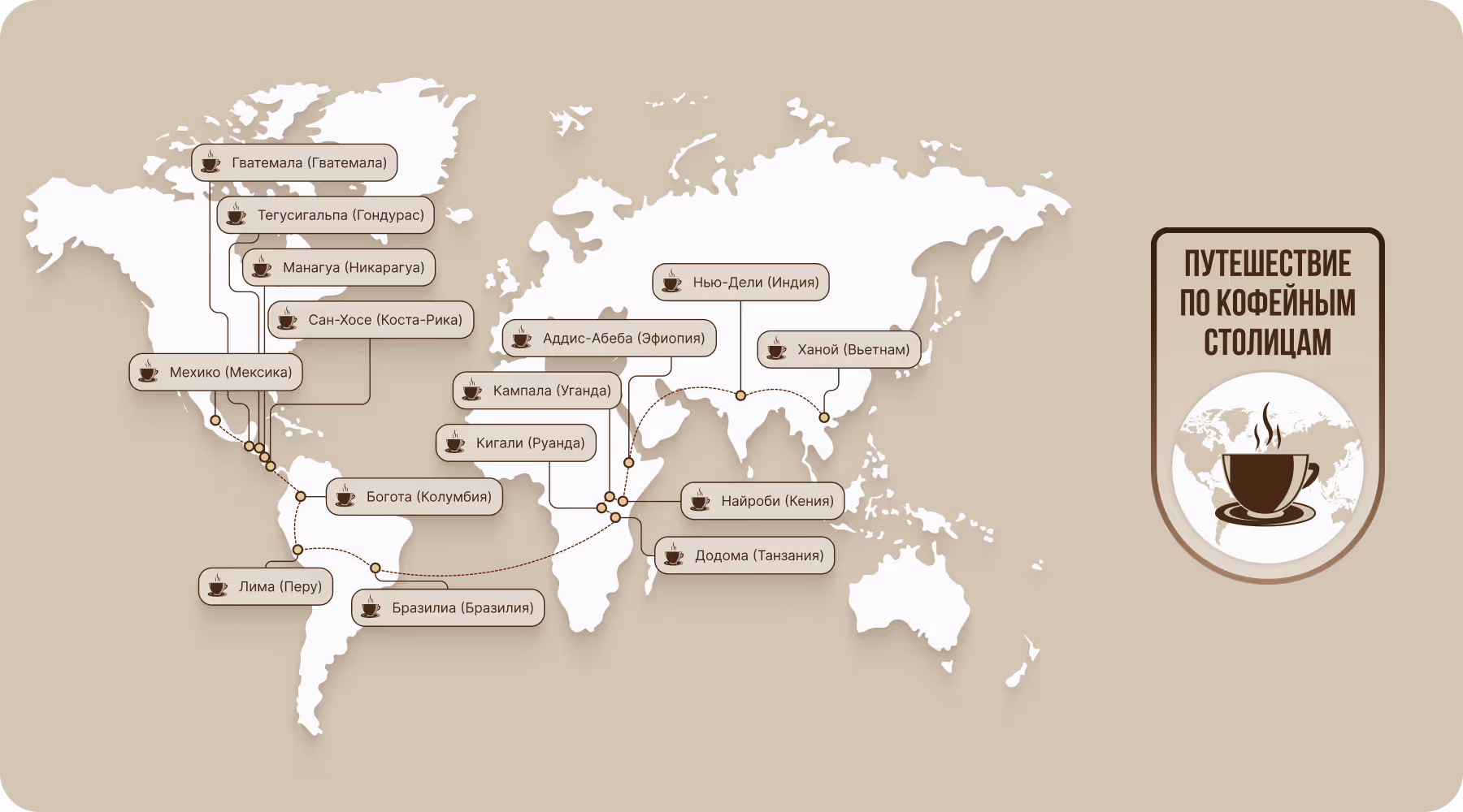 Объединить 85 сотрудников компании для виртуального челленджа — путешествия по кофейным столицам: от Эфиопии до Колумбии
