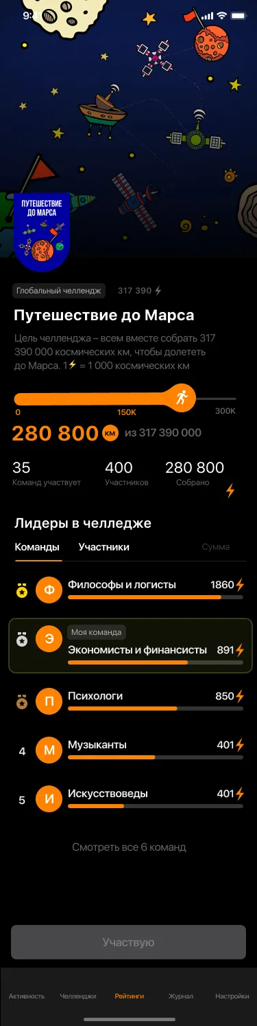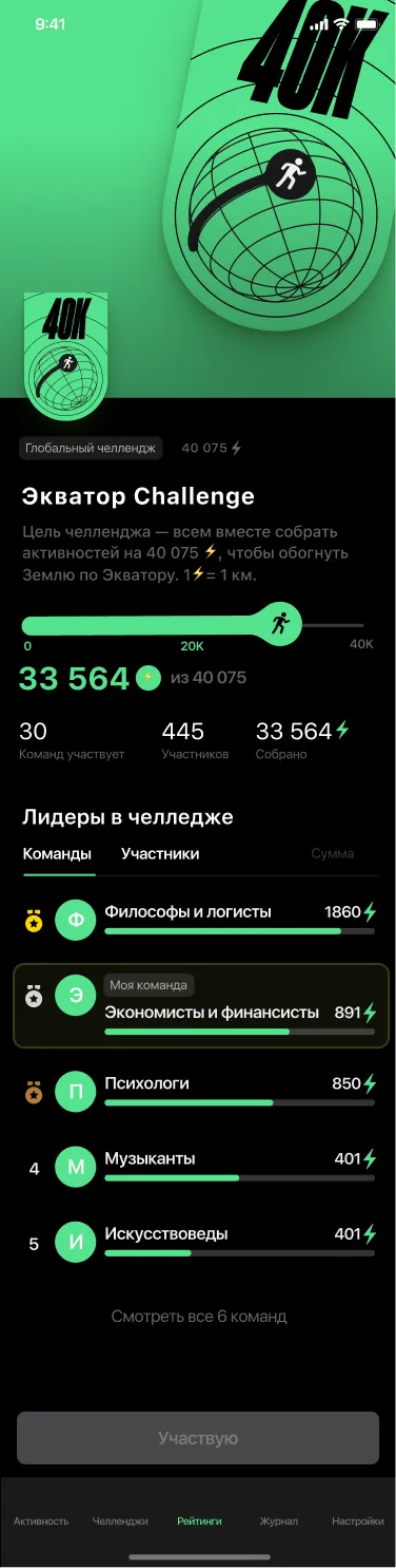 Самый популярный вариант — обежать Землю по экватору. Это 40 075 км. Как показывает наша практика, команда из 300 человек покоряет такой челлендж примерно за 1 месяц.