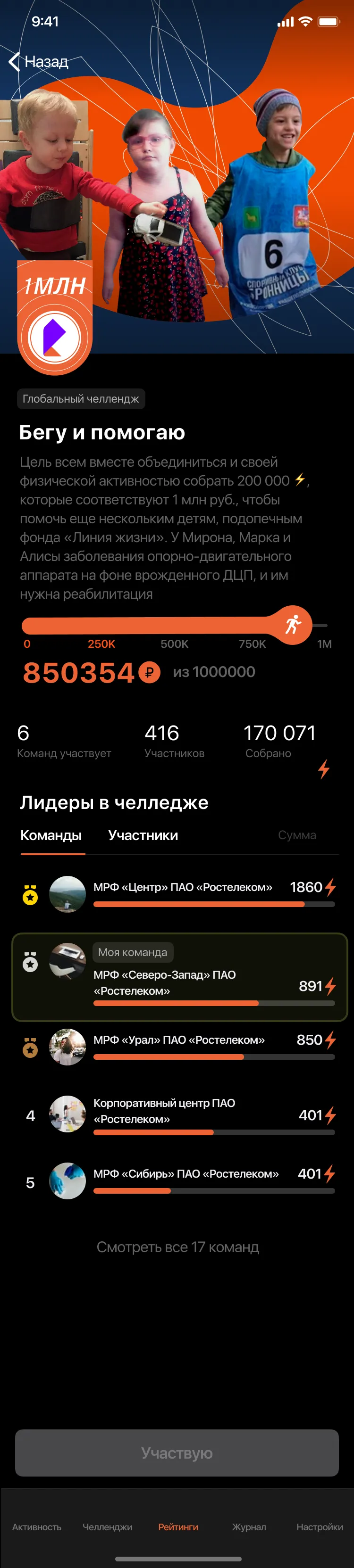 Акцию «Бегу и помогаю» в компании «Ростелеком» мы поддерживаем уже более 4 лет: шаги, бег и другие физические активности участников конвертируются в млн рублей для подопечных фонда «Линия жизни».
