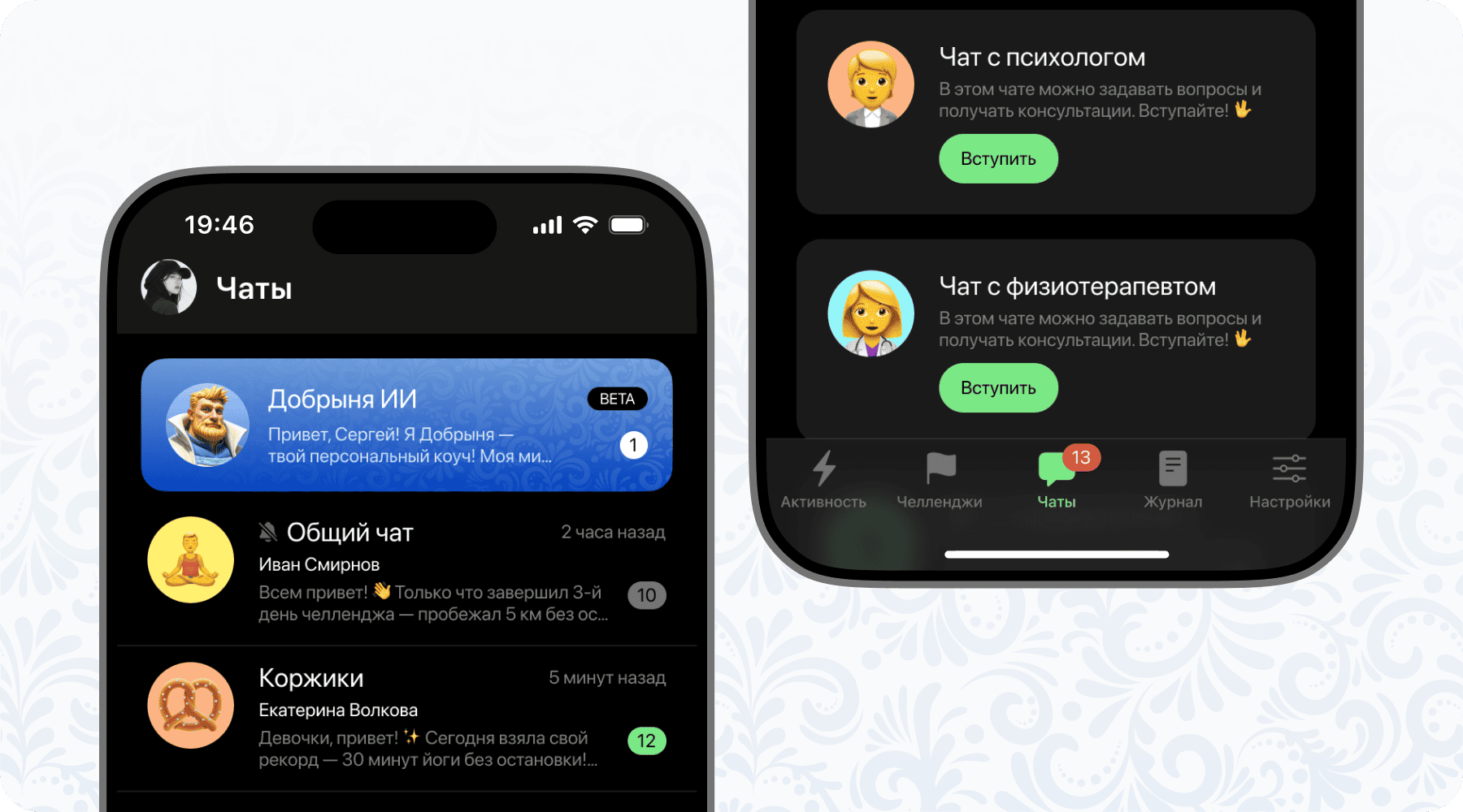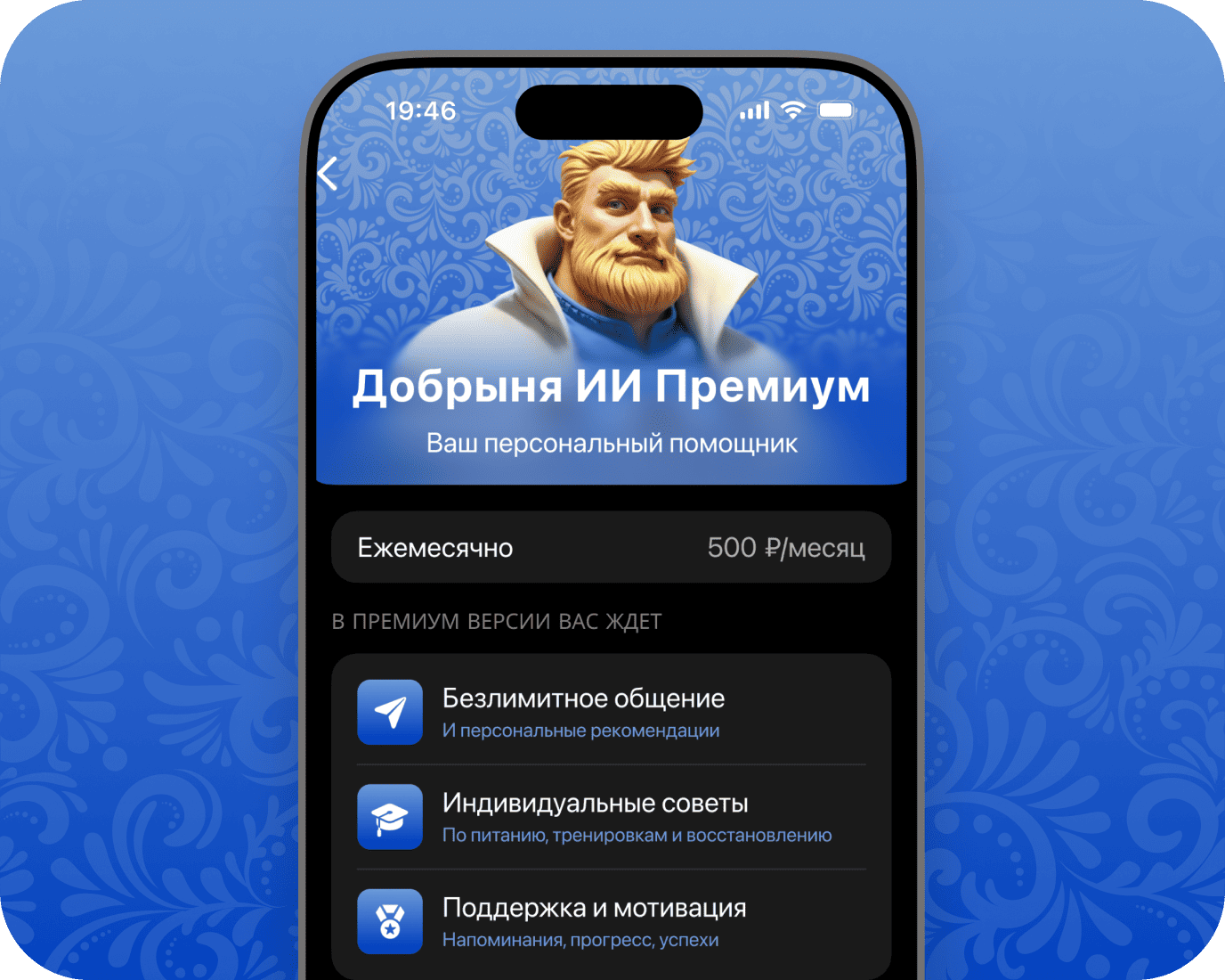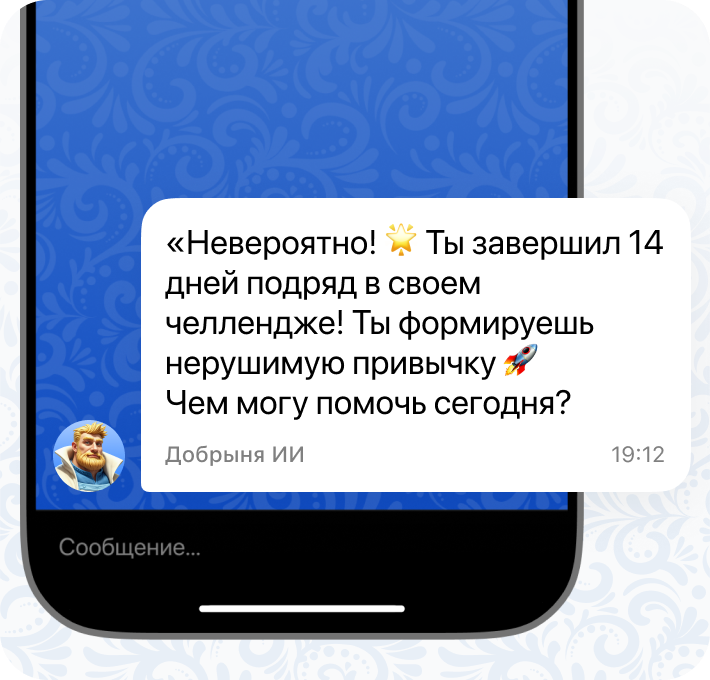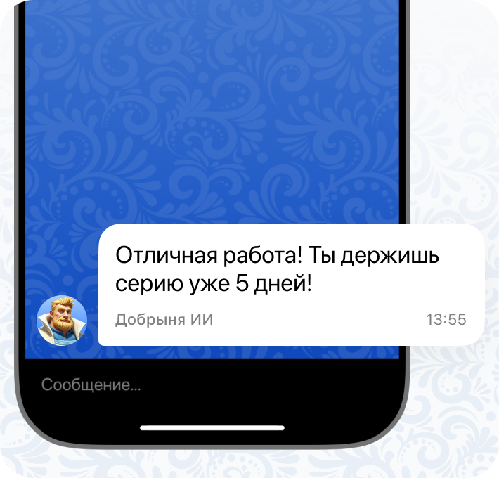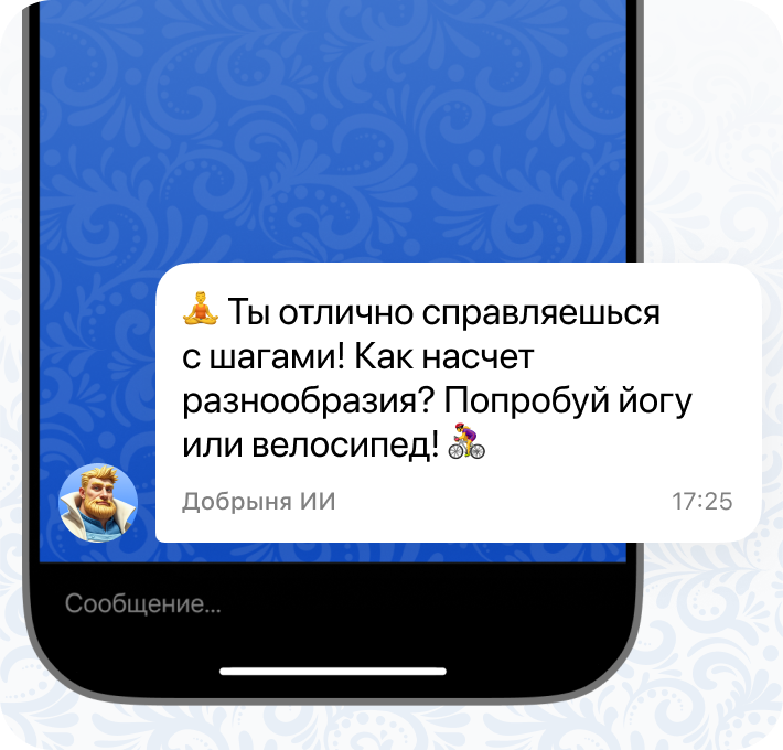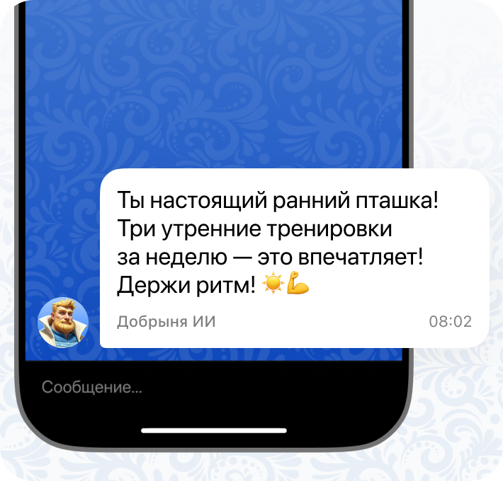 Пришлет уведомления — Добрыня напишет первым, напомнит о тренировке и отметит прогресс.