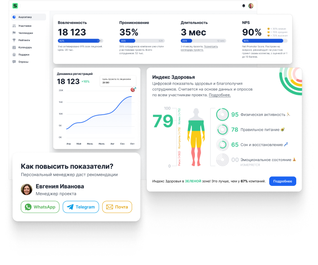 Мы предлагаем гибкость в выборе механики геймификации для разных компаний. Например, для одной команды мы можем предлагать продукцию компании в качестве награды, для другой — специально закупленные призы, купоны или промокоды. Это хорошо влияет на вовлечение и создает здоровый азарт в рамках корпоративного поля.