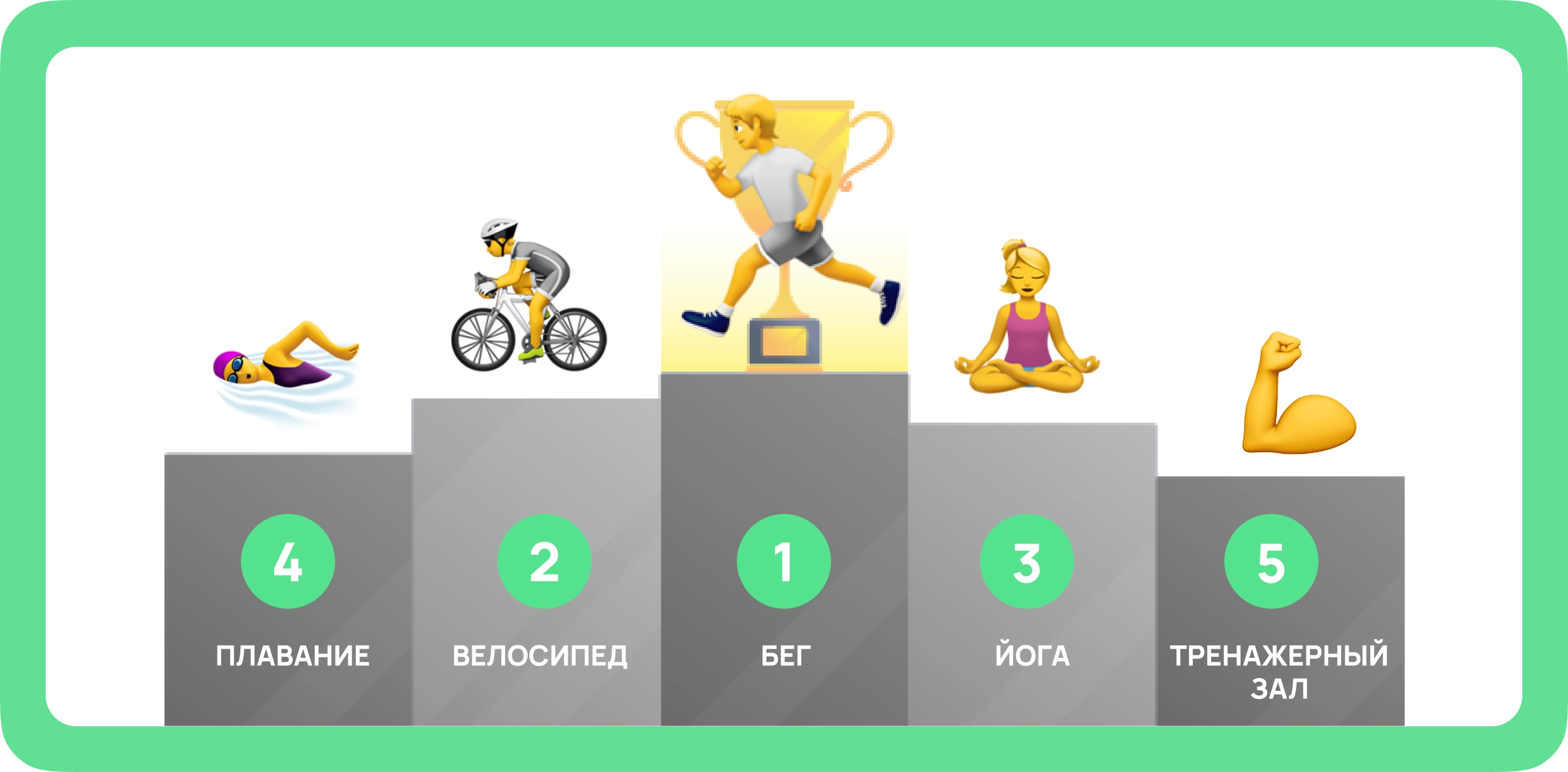 Вот топ-5 видов спорта, которые наши сотрудники предпочитали в этот месяц: