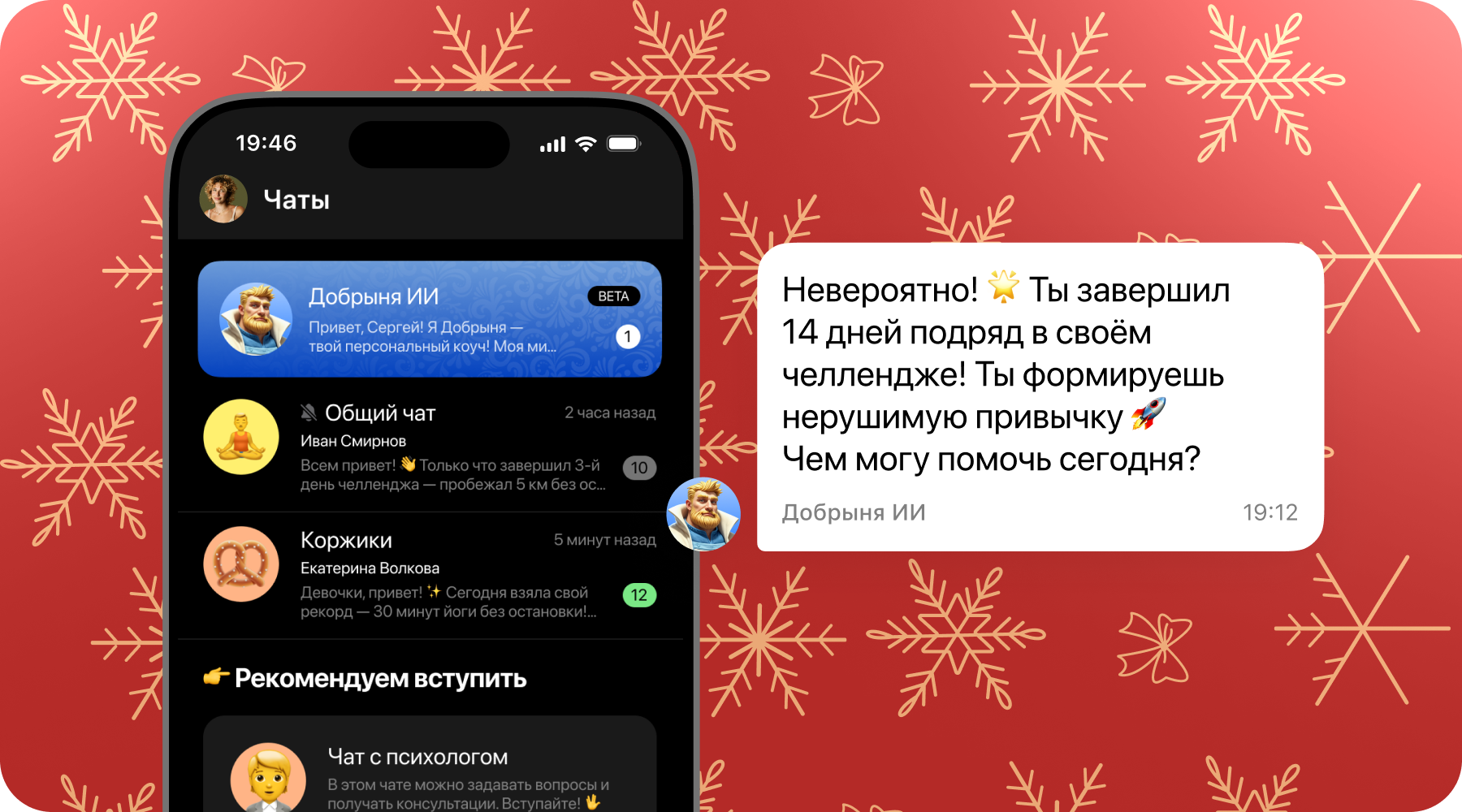 Вовлекает: Помощник мягко напоминает о задачах, подбадривает и помогает проходить челленджи.
