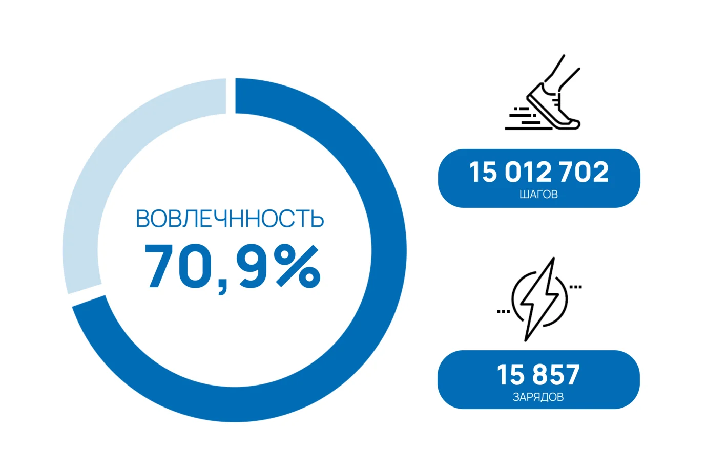 Организовали онлайн-челлендж, в котором приняли участие 71% от зарегистрировавшихся в проекте сотрудников и создали в коллективе атмосферу, которая располагает к занятиям спортом.