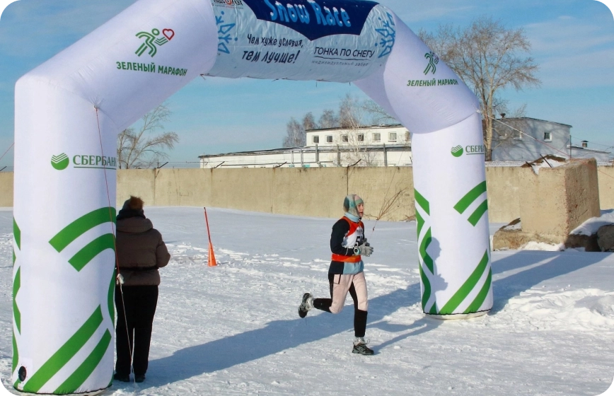 Верно замечено. Бежать практически не удавалось. Эта зима оказалась одной из самых снежных в Омской области, и глубина сугробов достигала пояса — целых 105 сантиметров. Большая часть трассы была покрыта нетронутым снегом. Тебе приходилось либо идти по чьим‑то следам, либо прокладывать собственный путь, либо взбираться наверх.