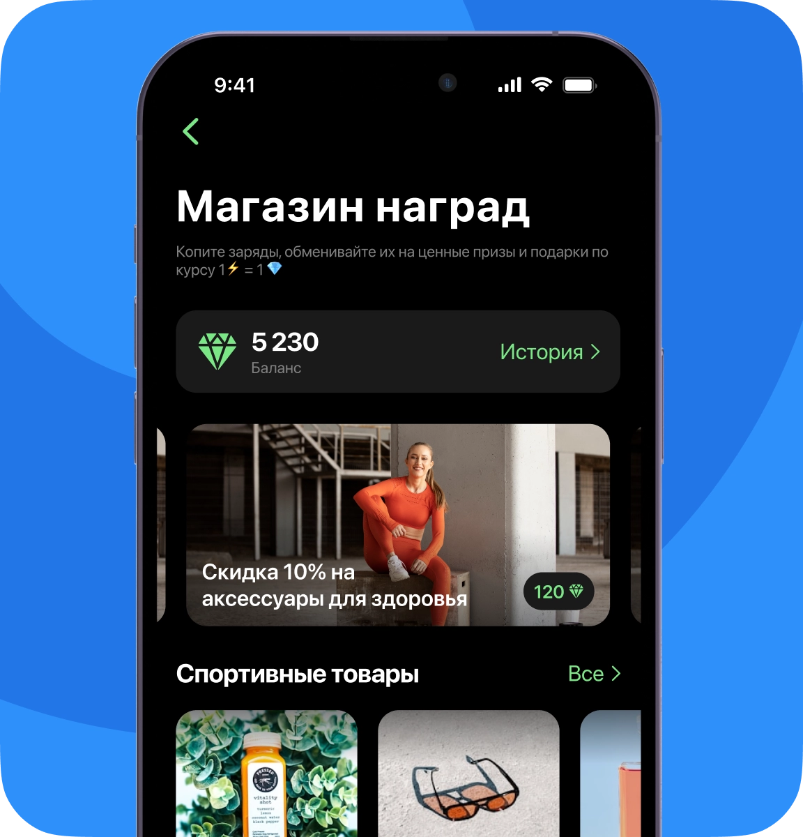 Вы можете подготовить специальную коллекцию мерча, которую сотрудники смогут обменивать на заработанные заряды. Это станет дополнительной мотивацией для участия и будет долго напоминать о классном событии.