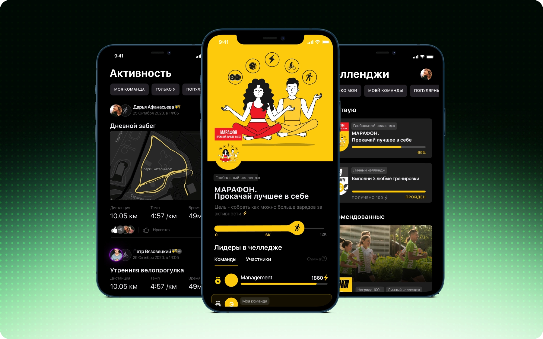 Чтобы добиться поставленных задач, мы разработали кастомное приложение «Петрович. Всё отлично». Оно стало центром проекта: с его помощью мы вовлекали участников, мотивировали их, информировали о ЗОЖ, спорте и активностях проекта. К тому же в условиях распределённой команды оно позволило участникам быть на одной волне: общаться, отслеживать свой прогресс, в режиме реального времени наблюдать за успехами коллег.