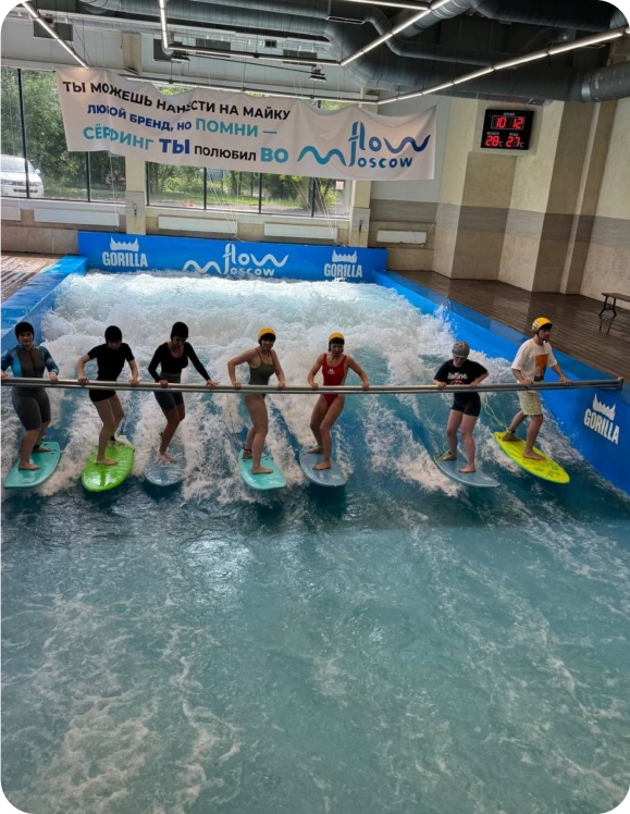 Танцы, сквош, сёрфинг, бег, яхтинг, бокс, скалолазание, сайкл, байдарки, аэростретчинг и джампинг. Каждый участник смог выбрать что‑то подходящее под свои интересы и уровень подготовки, а ещё смог попробовать что‑то новое.