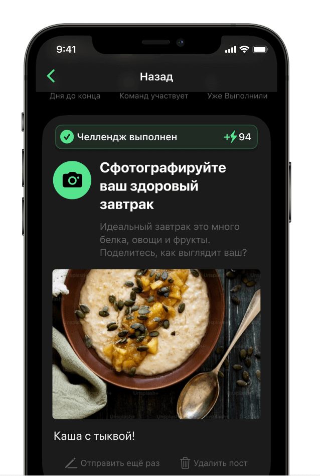 Вас ждут разнообразные и простые задания, например, опубликовать фотографию своего обеда или себя после медитации, написать рассказ или поделиться историей успеха.