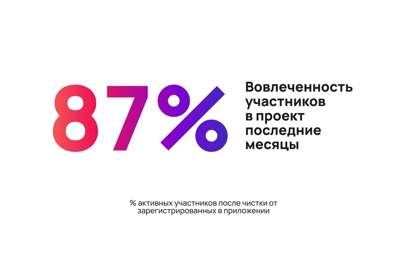 Участники челленджа в режиме реального времени могли отслеживать свой прогресс, наблюдать за успехами коллег и мониторить достижение общей цели. Для того чтобы информация была актуальной, мы контролировали работу дашбордов и рейтингов. Так у пользователей сохранялись мотивация и азарт.