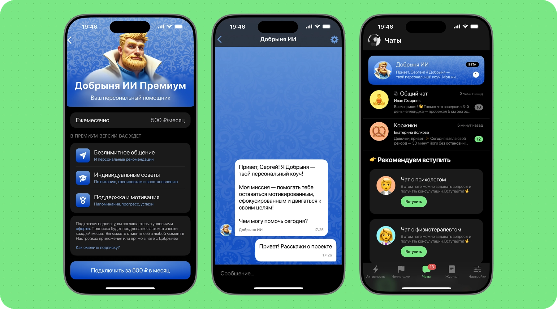 Мы выпустили «Добрыню ИИ» — нашу собственную разработку на базе искусственного интеллекта! Добрыня может дать персонализированные рекомендации, напомнить о тренировке и поделиться лайфхаками. Он не только помощник, но и прекрасный мотиватор: поздравит с достижениями и отметит прогресс в челлендже. Участники смогут задать ему вопросы и за мгновение получить развернутые ответы.