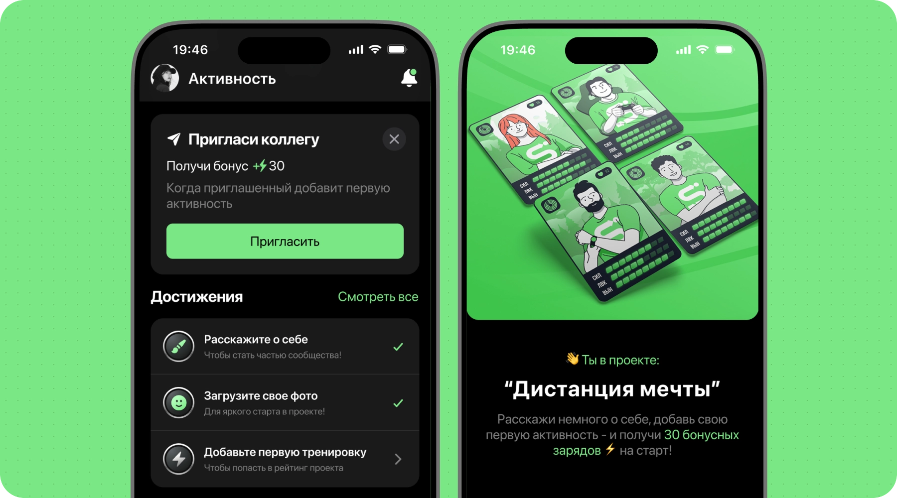Ищите способы привлечь сотрудников в проект? Предложите участникам сделать это собственноручно: каждый пользователь может отправить ссылку коллеге. Как только человек скачает приложение и подключится к проекту, оба сотрудника получат бонусы! Что учесть: приглашение работает на уровне проекта, а не только для глобального челленджа