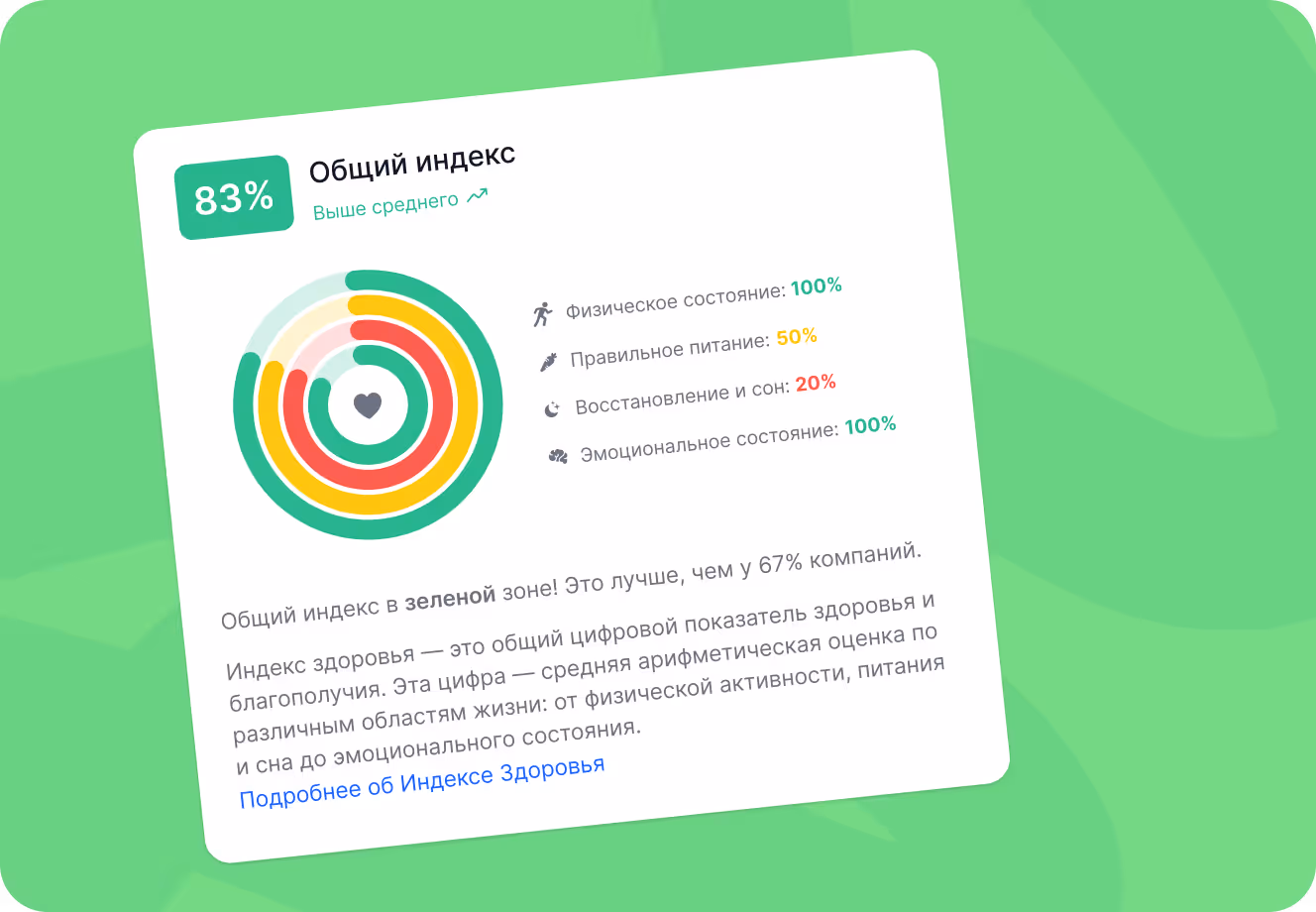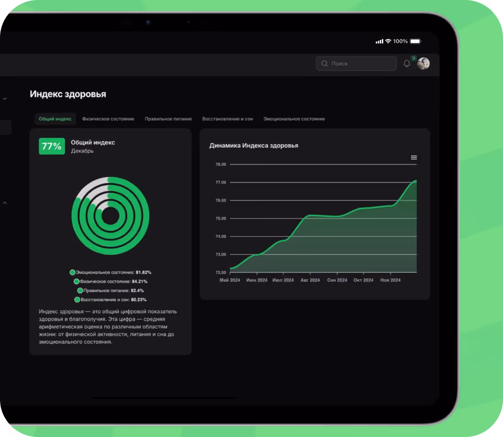 Цифровой показатель для отслеживания состояния по четырем областям: физическая активность, питание, сон и восстановление, эмоциональное состояние