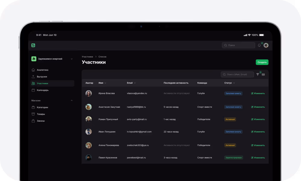 Раздел для лидера сообщества, в котором собраны базовые функции по управлению командой. Самое важное — в одном месте