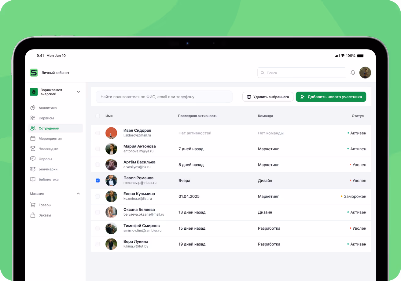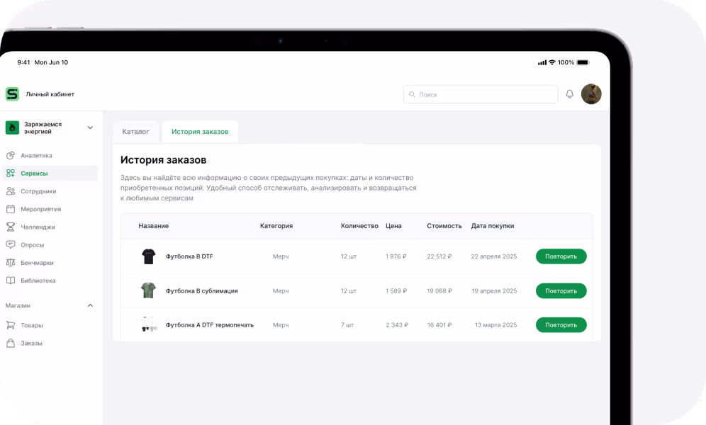 Кабинет HR — удобный рабочий инструмент, где можно управлять участниками, следить за прогрессом проекта, запускать активности и — что особенно важно — заказывать сервисы для сотрудников