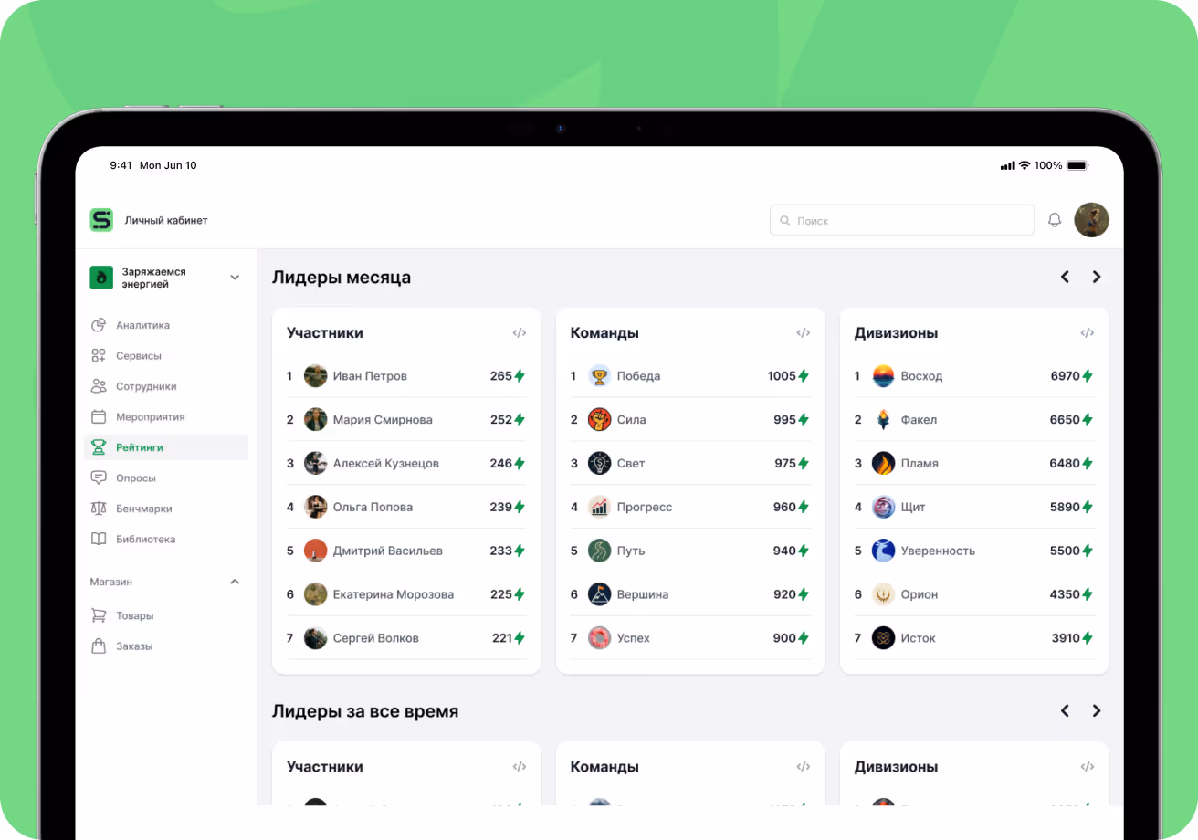 Рейтинговая система для отслеживания топ-команд и участников по итогам месяца