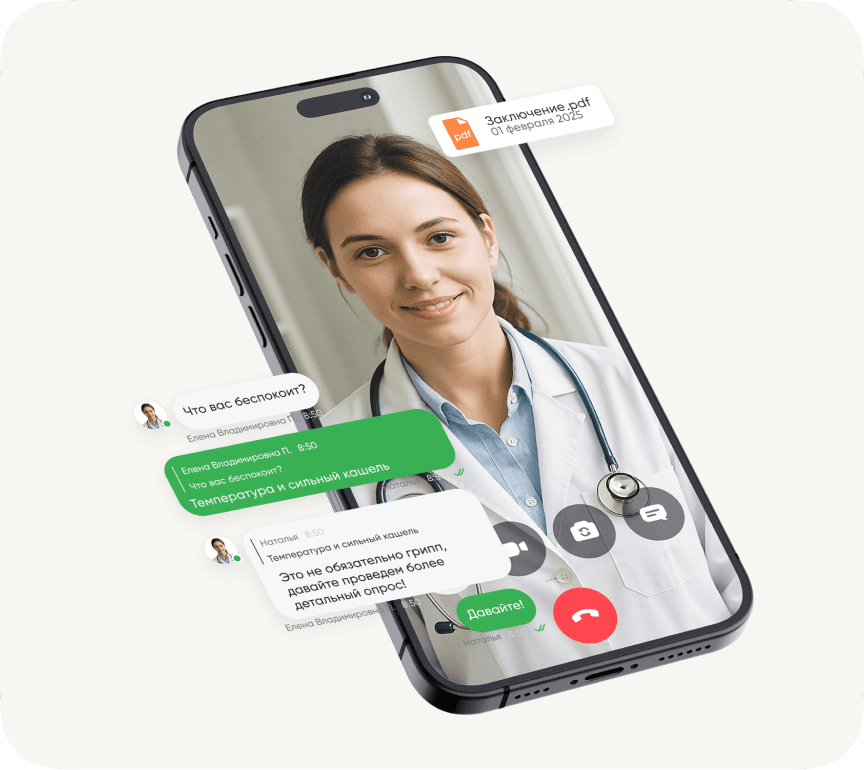 Цифровой медсервис предлагает консультации в удобное время в формате аудио, видео или чате. Квалифицированные врачи, дежурный педиатр и терапевт, узкие специалисты.